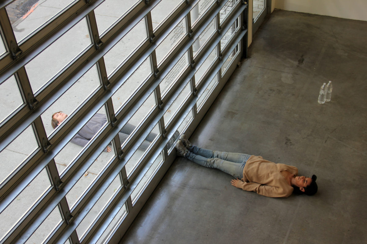 I am not quite sure. This is an arduous terrain (2013), three day-long action. Here Malin Arnell and Jen Rosenblit. Photo: Lia Lowenthal.