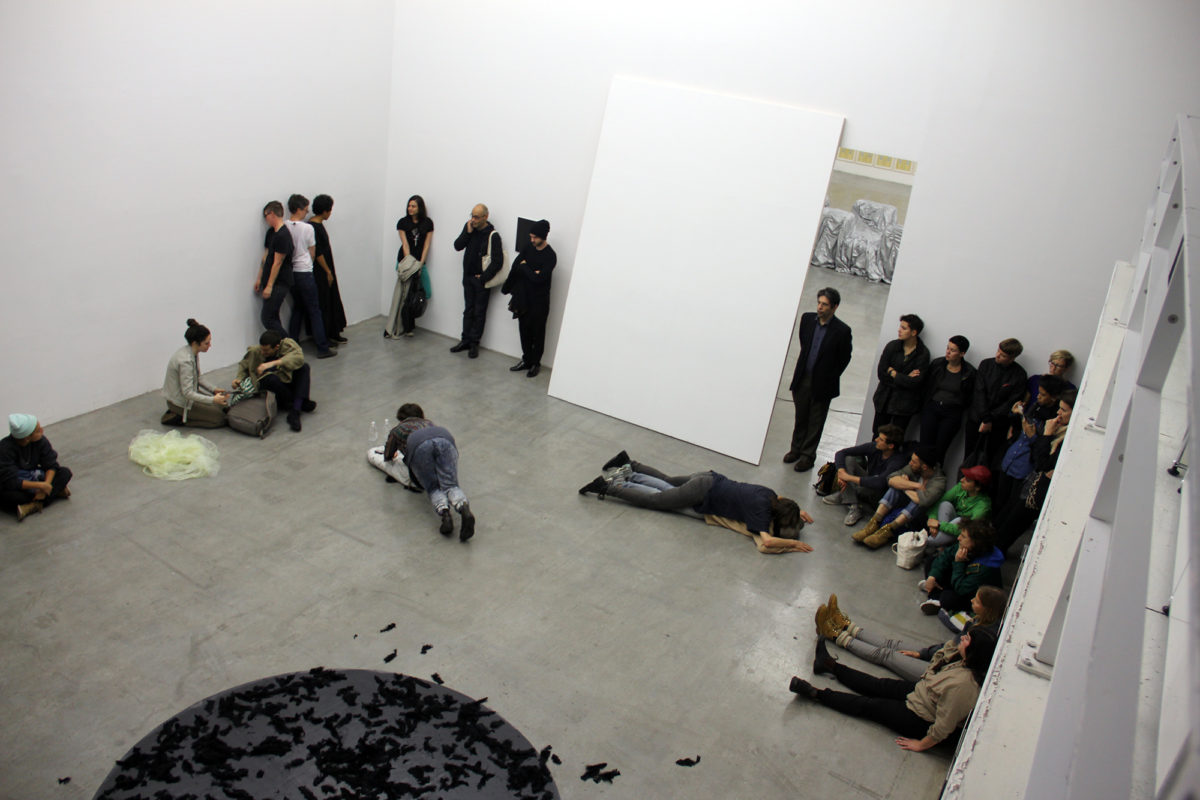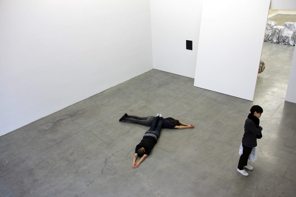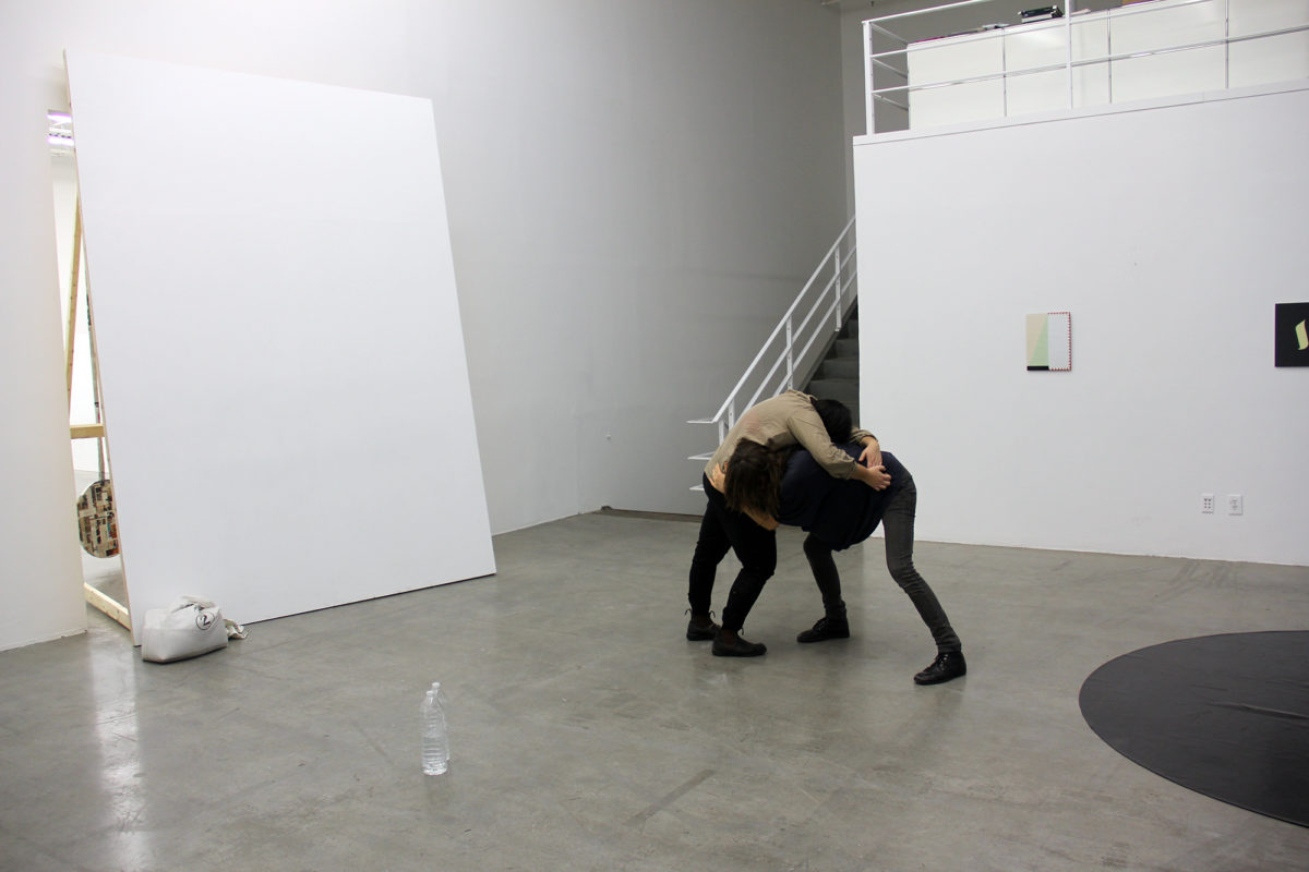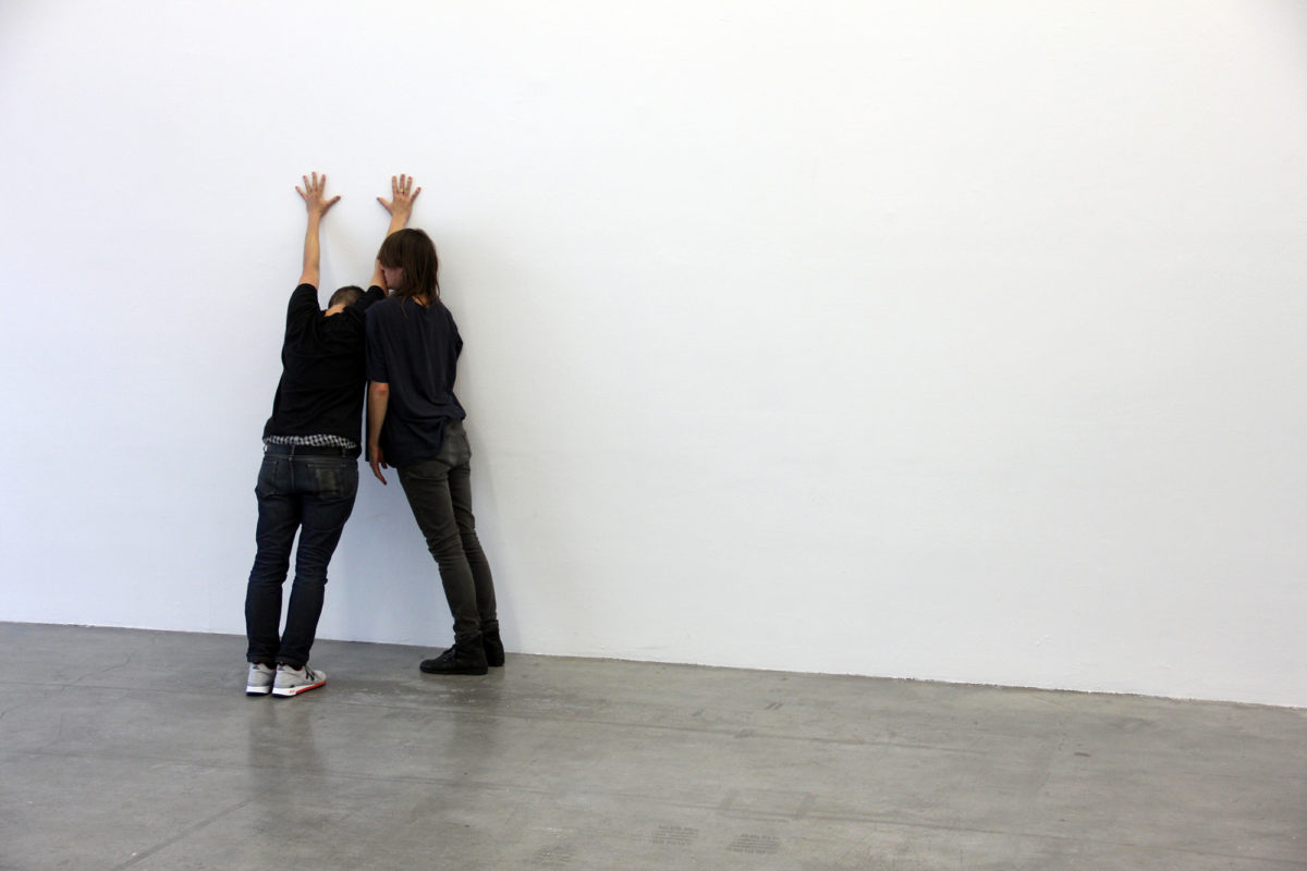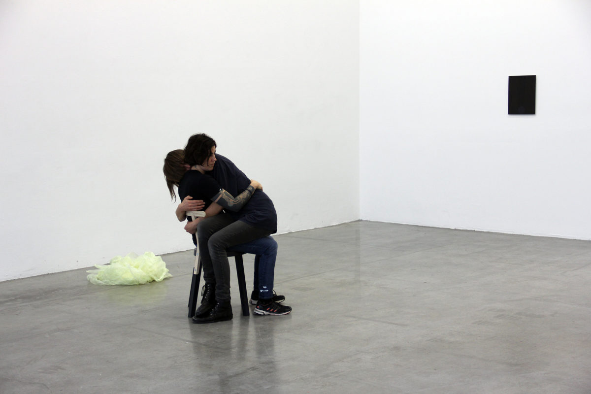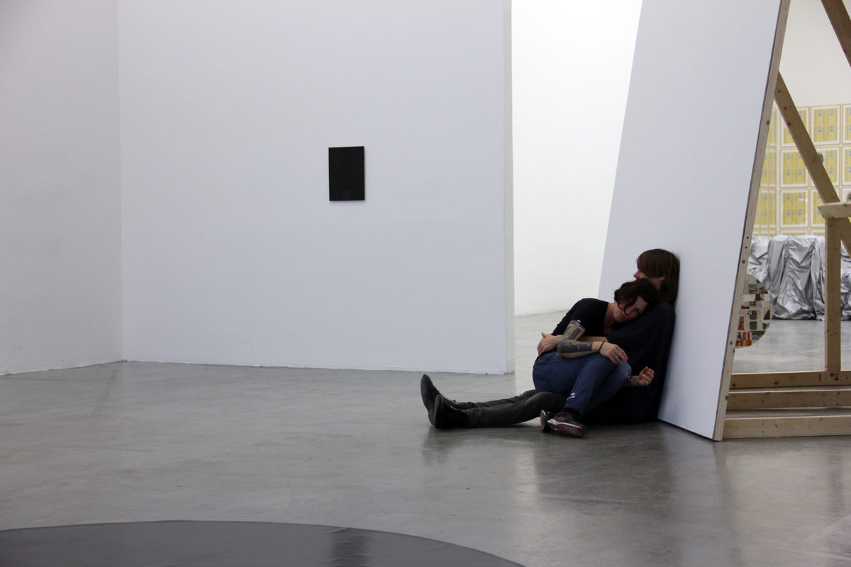 For the three-day action I am not quite sure. This is an arduous terrain (2013) Malin Arnell invited nine lives to spend an hour in silence with her, one-on-one, in the foyer of the exhibition space. According to four short instructions unique to each meeting, they occupied the space as volume, mass and weight. Using each other as transitional objects and providing each other with psychological comfort. As part of the action and after the hour spent with Arnell, each of the lives spent ten-minute in a free writing exercise. This writing became one of the ways of documenting the action, in addition to Lia Lowenthal, who was present in the space throughout with her still camera.