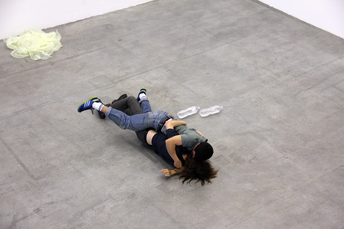 I am not quite sure. This is an arduous terrain (2013), three day-long action. Here Malin Arnell and Robyn Hillman Harrigan. Photo: Lia Lowenthal.