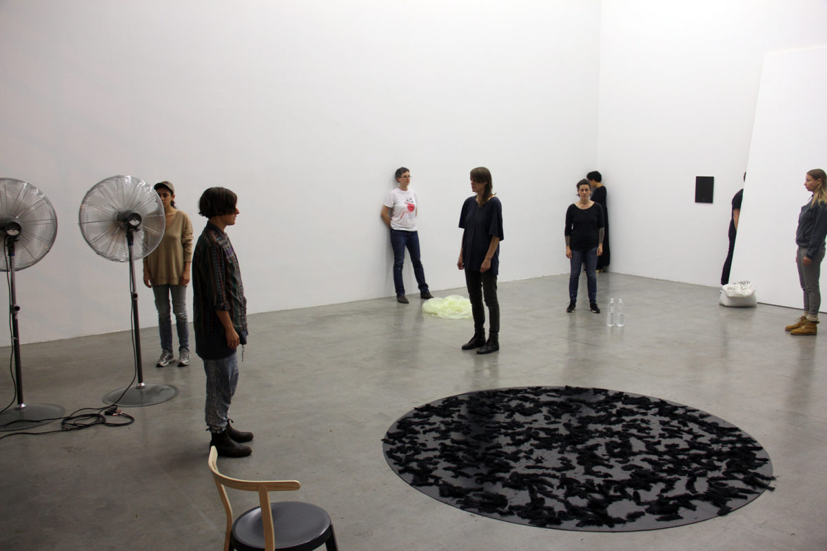 I am not quite sure. This is an arduous terrain (2013), three day-long action. Here Vanessa Anspaugh, Jess Arndt, Malin Arnell, Fia Backström, Paula Garcia, Robyn Hillman Harrigan, Katherine Hubbard, Clara López Menéndez, Ulrike Müller and Jen Rosenblit. Photo: Lia Lowenthal.