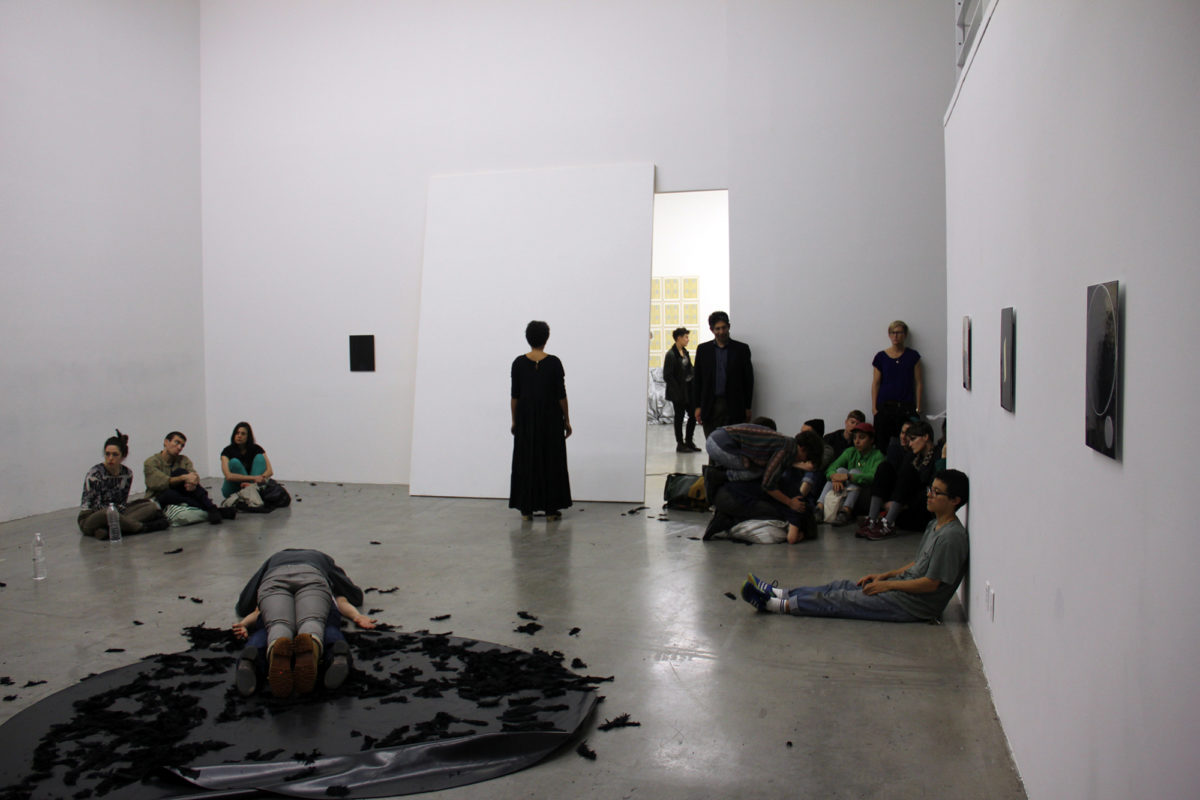 I am not quite sure. This is an arduous terrain (2013). Three day-long action, as part of the group exhibition Descartes’ Daughter (2013), curated by Piper Marshall at the Swiss Institute Contemporary Art, New York City. Documentation of the action has been published in Paletten Art Magazine #295, 2014. I am not quite sure. This is an arduous terrain (again) (2016) was performed during Avhandling / Av_handling (Dissertation / Through_action) (2016), then the invited nine lives where Claude Blüna, Åsa Elzén, Mario Fjell, Magdalena Górska, Annica Karlsson Rixon, Leffe Kronlöf, Jorun Kugelberg, Clara López Menéndez, and Andrea Svensson.