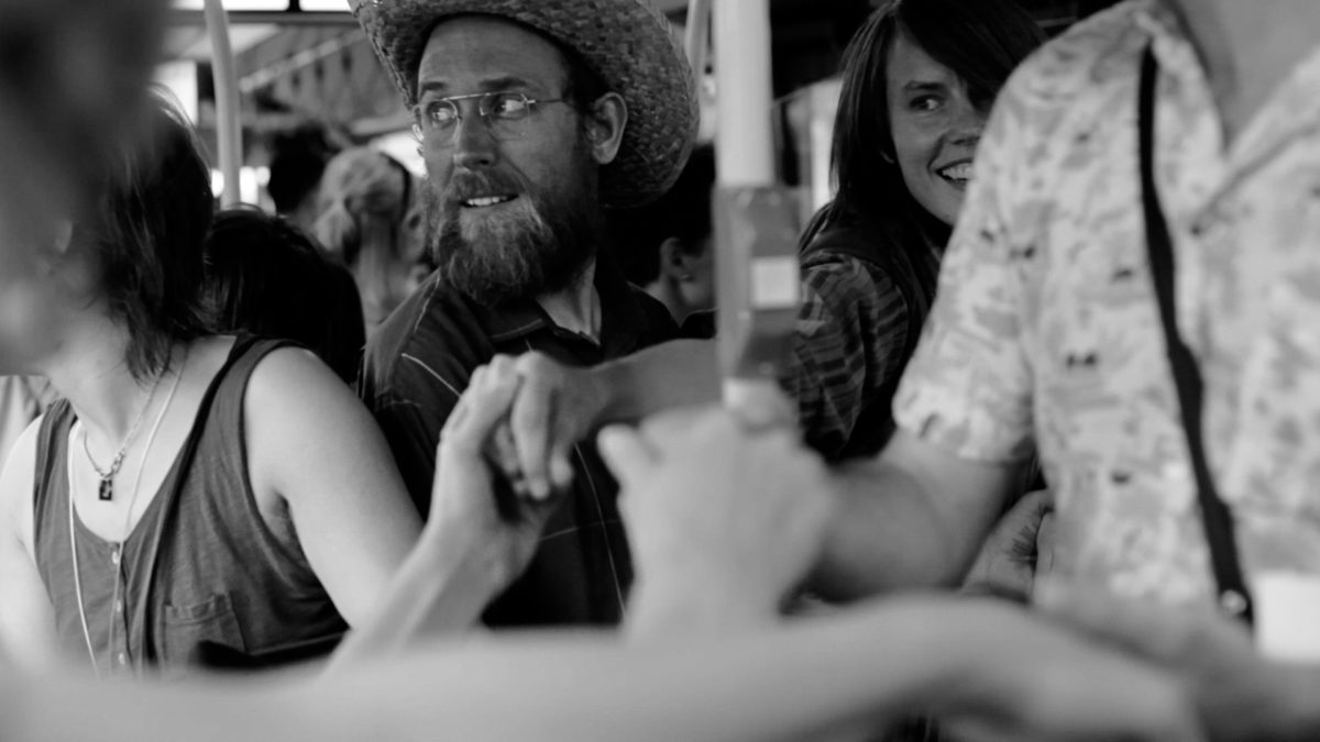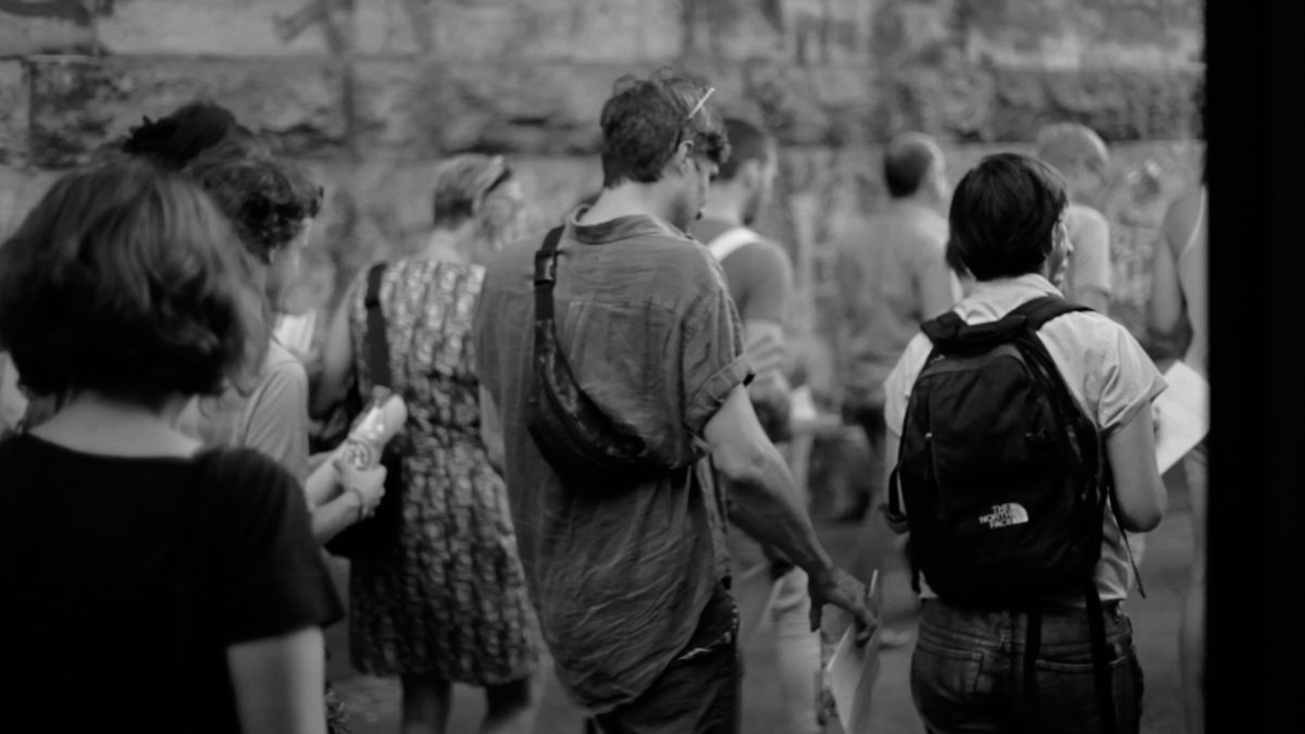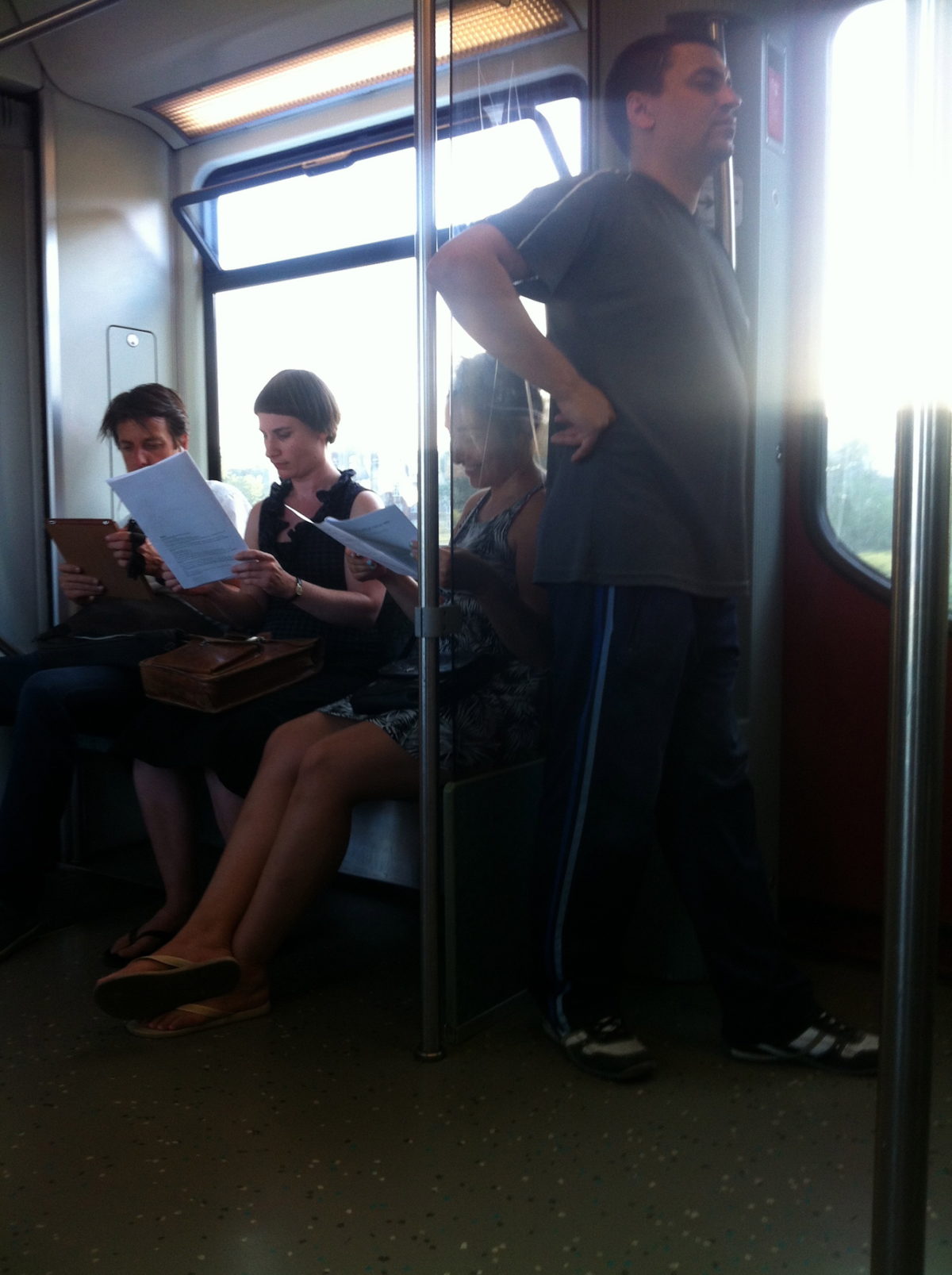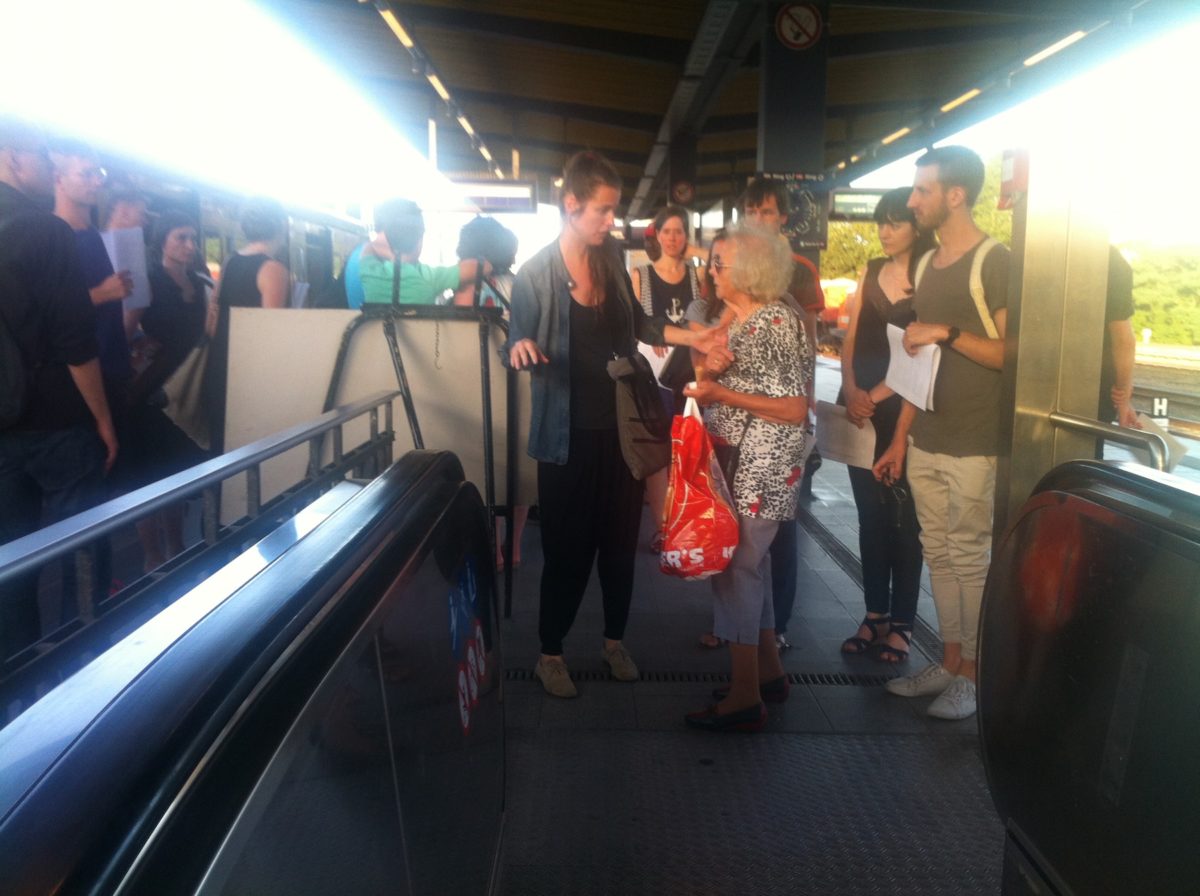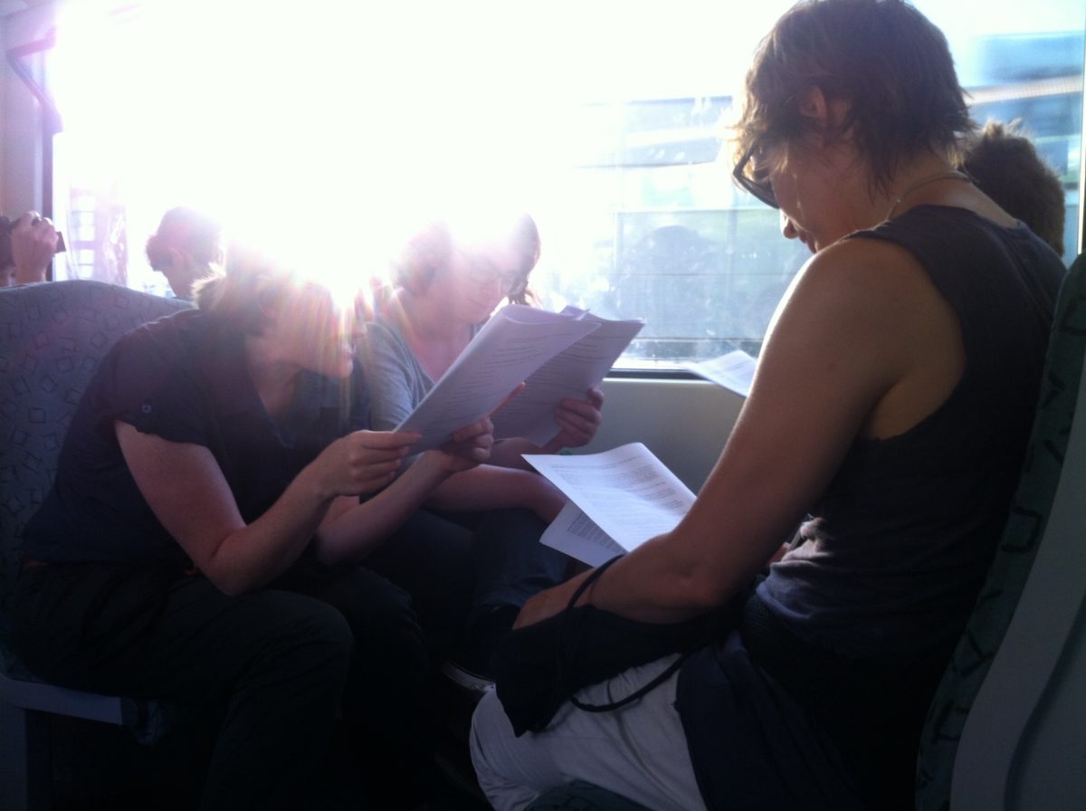 For the WIR SPIELEN (WE PLAY) project, YES! Association / Föreningen JA! extended an invitation to everyone to join on a cyclical trip on the Berlin Ringbahn with Act 5: Zyklische Gesellschaftsreise (2013). A group of over 75 lives travelled collectively and was prompted to engage in the reading of a script by YES! Association / Föreningen JA!. The script was composed of different quotations from texts and aimed at starting a conversation around the desire to make sense of “today” through looking, moving, conversing, and reading aloud.